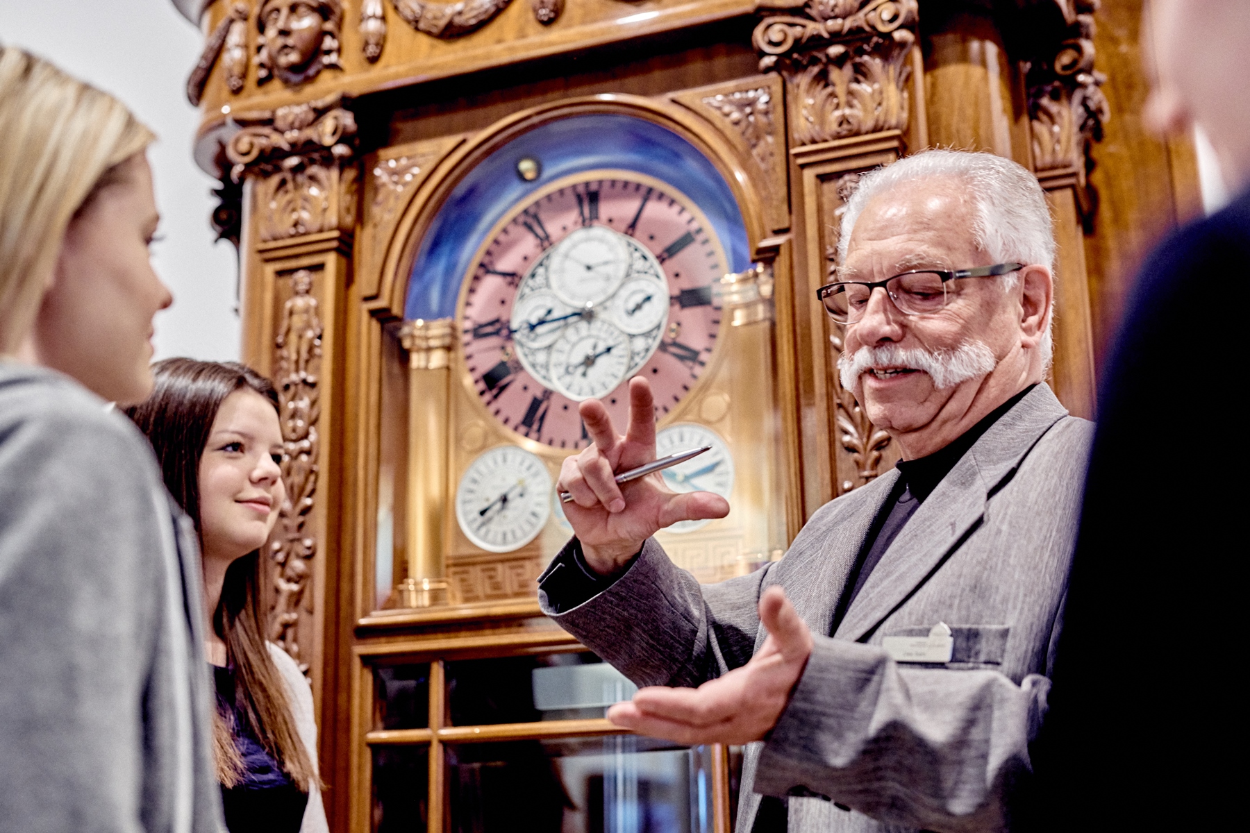 Bild: Gespräch an der Astronomischen Kunstuhr©Stiftung Deutsches Uhrenmuseum Glashütte_René Gaens
