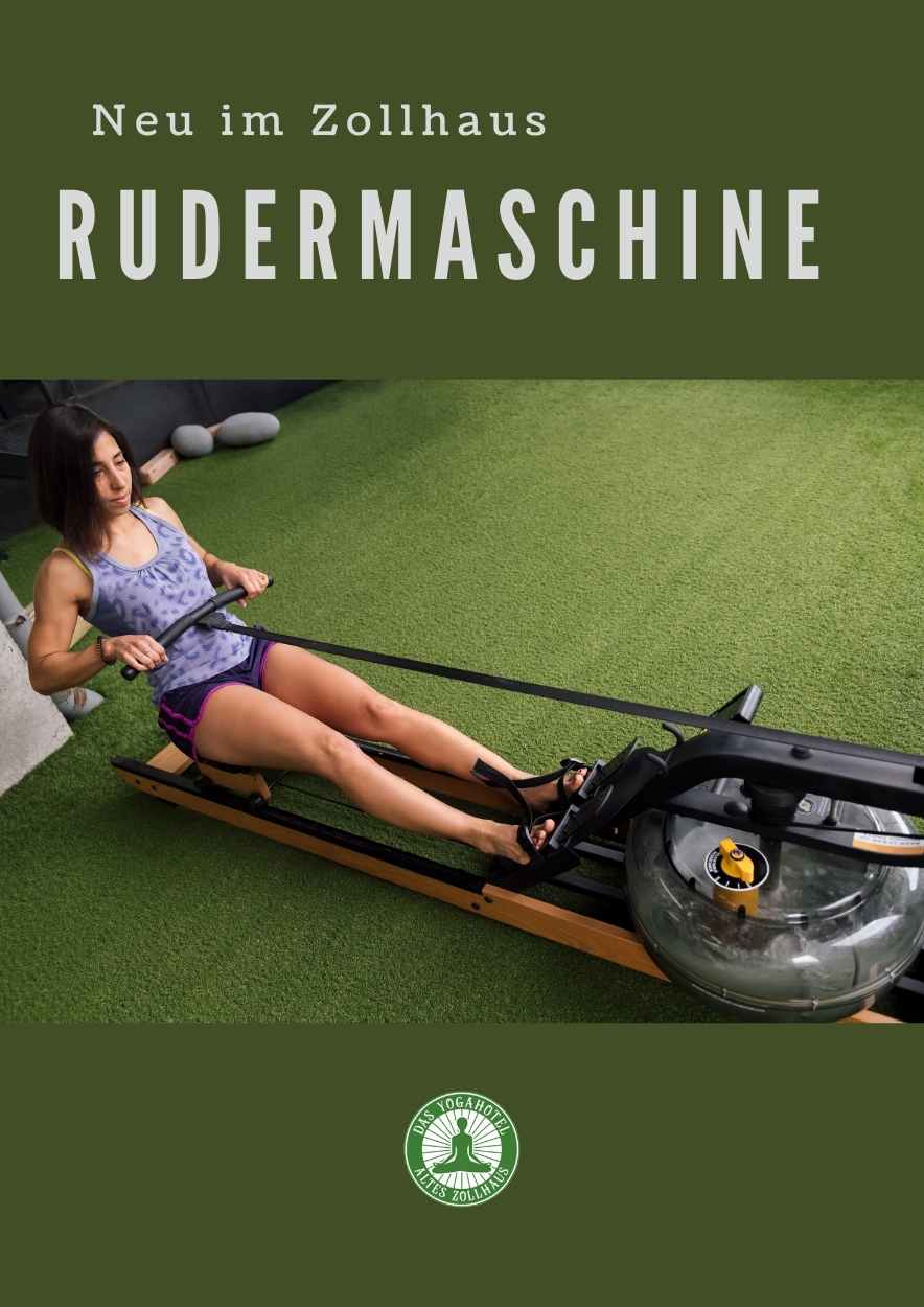 Brand new in the Zollhaus is our rowing machine with water. Here you can now not only jog in the forest or do exercises in our small fitness room, no, now you can use our new rowing machine. Rowing is one of the few sports that uses almost all muscle groups and trains strength, endurance, coordination, circulation and the heart. It is a very gentle form of endurance sport and ideal for people who don't like to exert themselves. Rowing is also a sociable sport and we would be delighted if our new rowing machine became a meeting place for athletes. Our rowing machine is equipped with a water resistance system and thus simulates rowing on a lake, river or bay. A training session on our rowing machine is a unique experience and, of course, an effective workout. Depending on your interests and training goals, we offer group lessons or individual training.