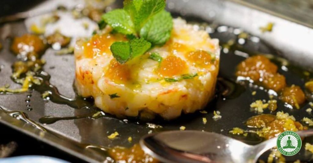 Fein geschnittene, rohe Garnelen aus dem Mittelmeer – frisch, zart und mit einer leichten Würze verfeinert. Ein eleganter Auftakt, der die Reinheit des Meeresgeschmacks auf den Teller bringt.